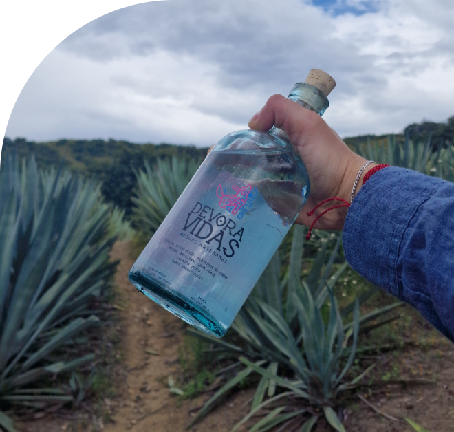 Mezcal Devoravidas Ensamble, elaborado con una selección de agave espadín y tobalá de entre 6 y 14 años de edad.